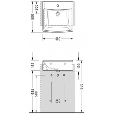 2044 Yarım Tezgah Üstü Lavabo 60x50cm.